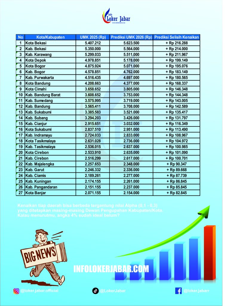 Sebagai portal informasi karir terdepan, Infolokerjabar.com menyusun simulasi kenaikan ini untuk membantu para pekerja mempersiapkan perencanaan finansial di tahun mendatang.